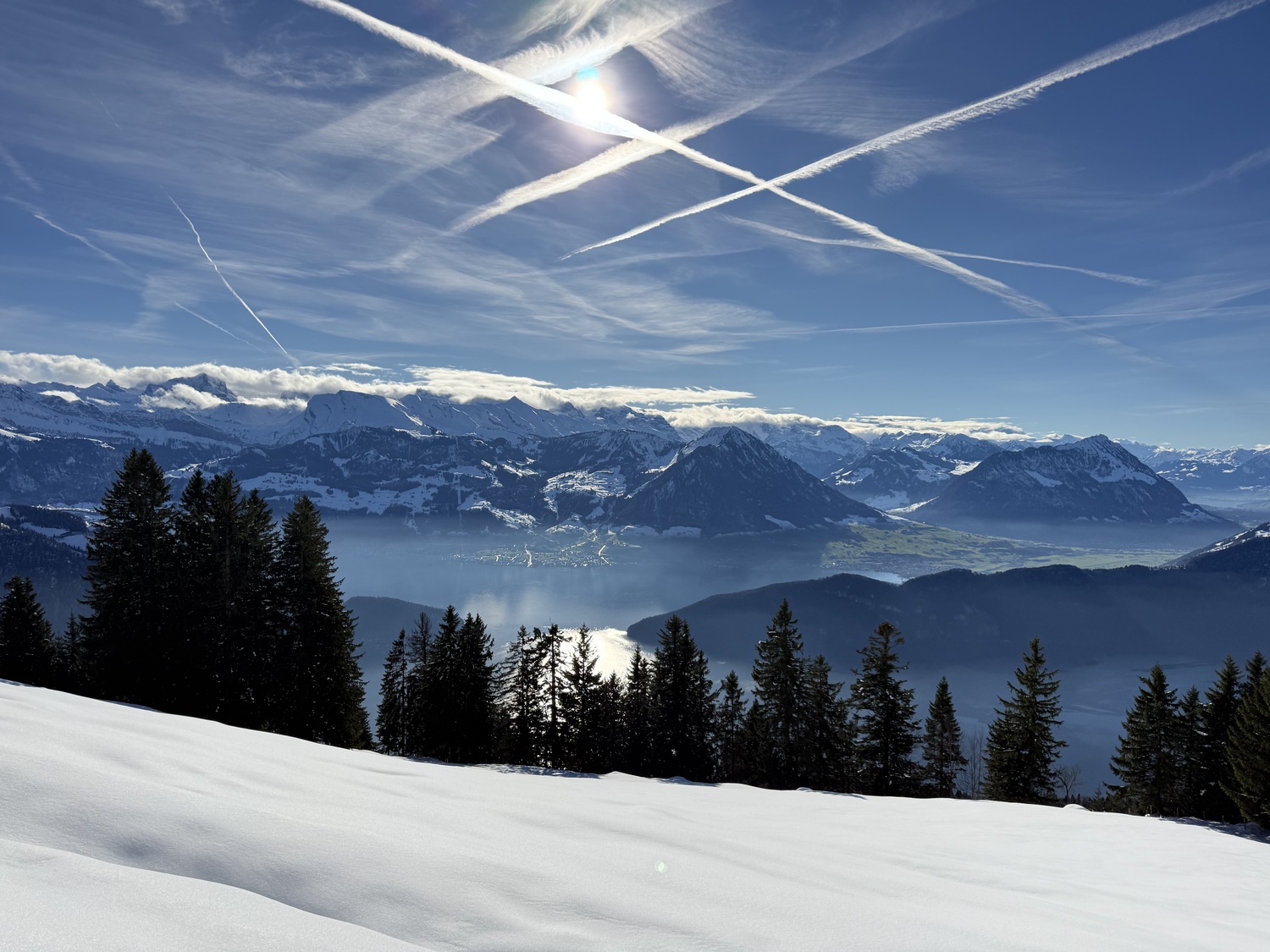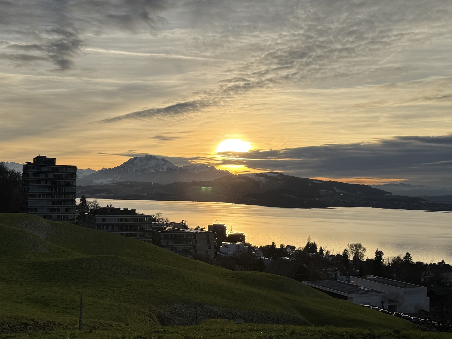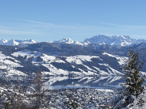 View of Zug, Zugersee, and the Alps from Zugerberg
