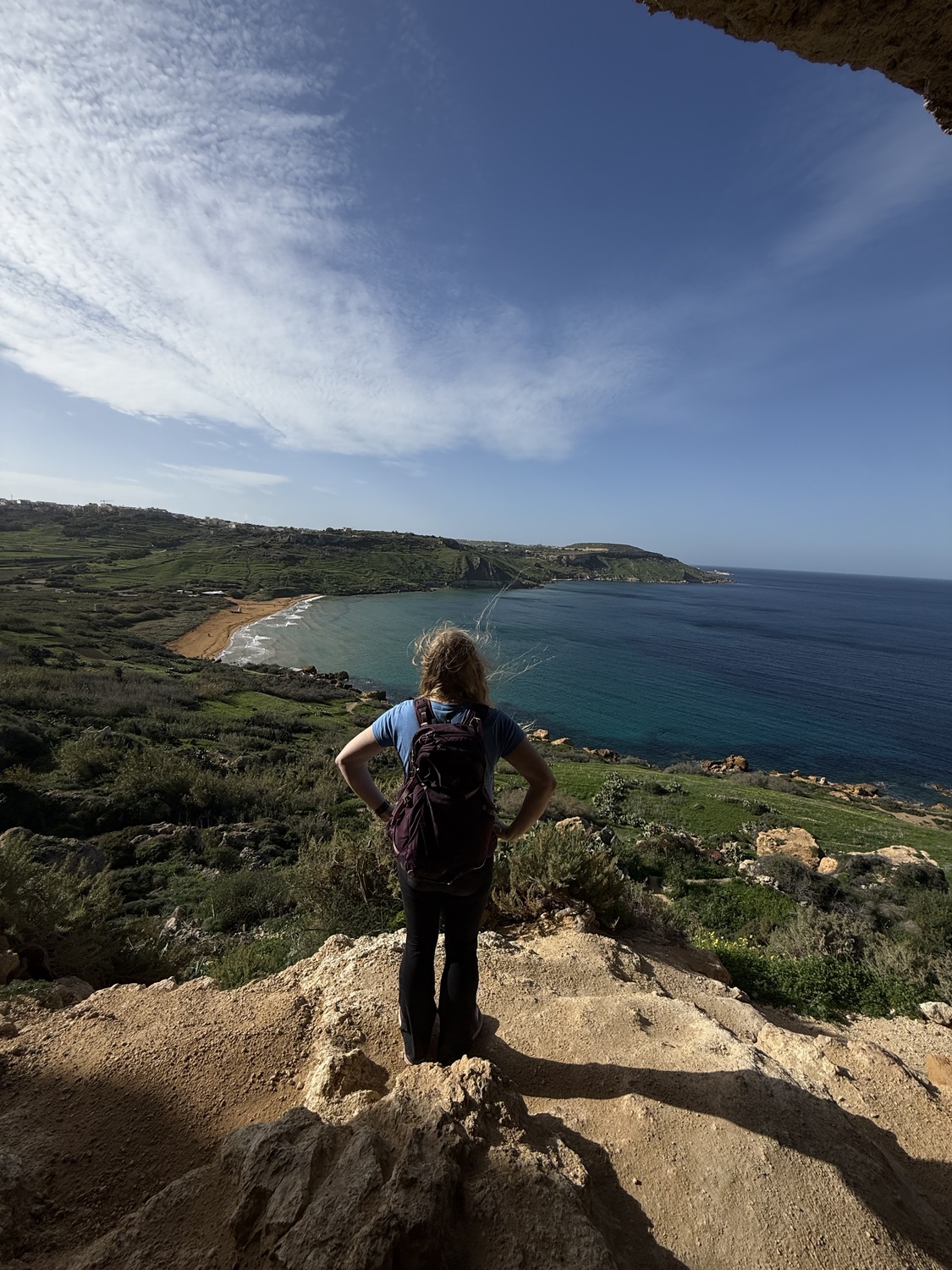 Me after Climbing to Mixta Cave, Overlooking Beach on Gozo, Malta